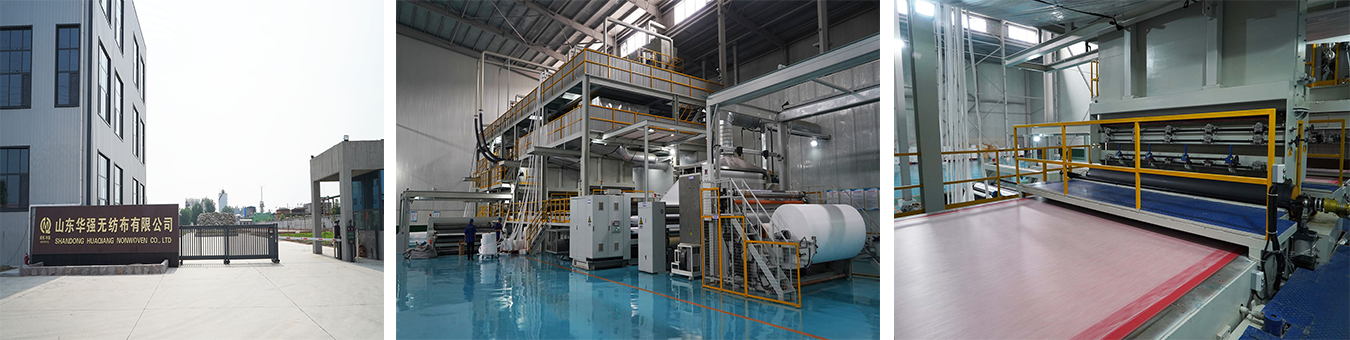 Shandong Huaqiang Non-woven Co., Ltd. was founded in 2011, Located at the junction of Zouping / Zhoucun,Shandong province. The location Haosheng Erhuai Industrial Zone, adjacent to the new 309 National Highway, The company building covers an area of more than 46,600 Square metres, Convenient: to ZOUPINGDONG highway 3KM only, 7KM away from the Zouping Bullet train station, as well as 80KM to Jinan International Airport, It has more than 200 employees, PP spun-bond non-woven fabric production 10 lines Needle-punched (as named BUKU) 4 production lines, 2 Lines of polypropylene staple fiber .With an annual output of 25,000 tons, Can produce at width of 5cm to 3.2 meters,S, SS, SMS, SSS, SMMSS, PP-spun-bond non-woven fabric, Melt-blown fabric, Needle-punched fabric etc. We can produce a variety of width and color non-woven cloth depend on different customer’s demand, products are widely used in medical ,health care, home decoration, industrial & agricultural cloth , advertising, Sofa and home furnishing, printing, packaging, building materials, environmental protection supplies, etc.